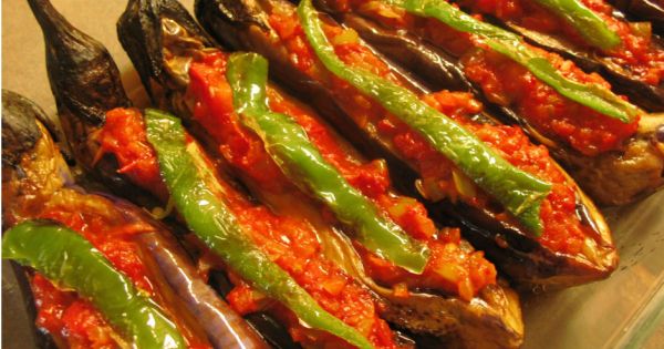 Patlıcanları alacalı soyduktan sonra tuzlu suda yarım saat bekletin. Yarım saat dolduktan sonra tavaya sıvı koyarak patlıcanları kızartın. Her tarafı kızarınca patlıcanları alın, havlu kağıtla yağını çektirin. Tavaya doğradığımız piyazlık soğanları alın, 5 dakika kavurun. Küçük küçük doğradığımız sivri biber ve sarımsağı da ekleyerek biraz daha kavurun. Ardından doğradığımız domatesleri ve baharatları da ekleyerek kavurun. Domates suyunu çekene kadar altını kapatın ve maydanozu ekleyin. Patlıcanları tepsiye veya borcama dizin. Ortalarından yarın ve iç harcını doldurun. Bir su bardağı su bir kaşık domates salçası, çok az tuzla sos yapıp üstlerine gelmeyecek şekilde dibine dökün. 170C fırına verin. Afiyet olsun.